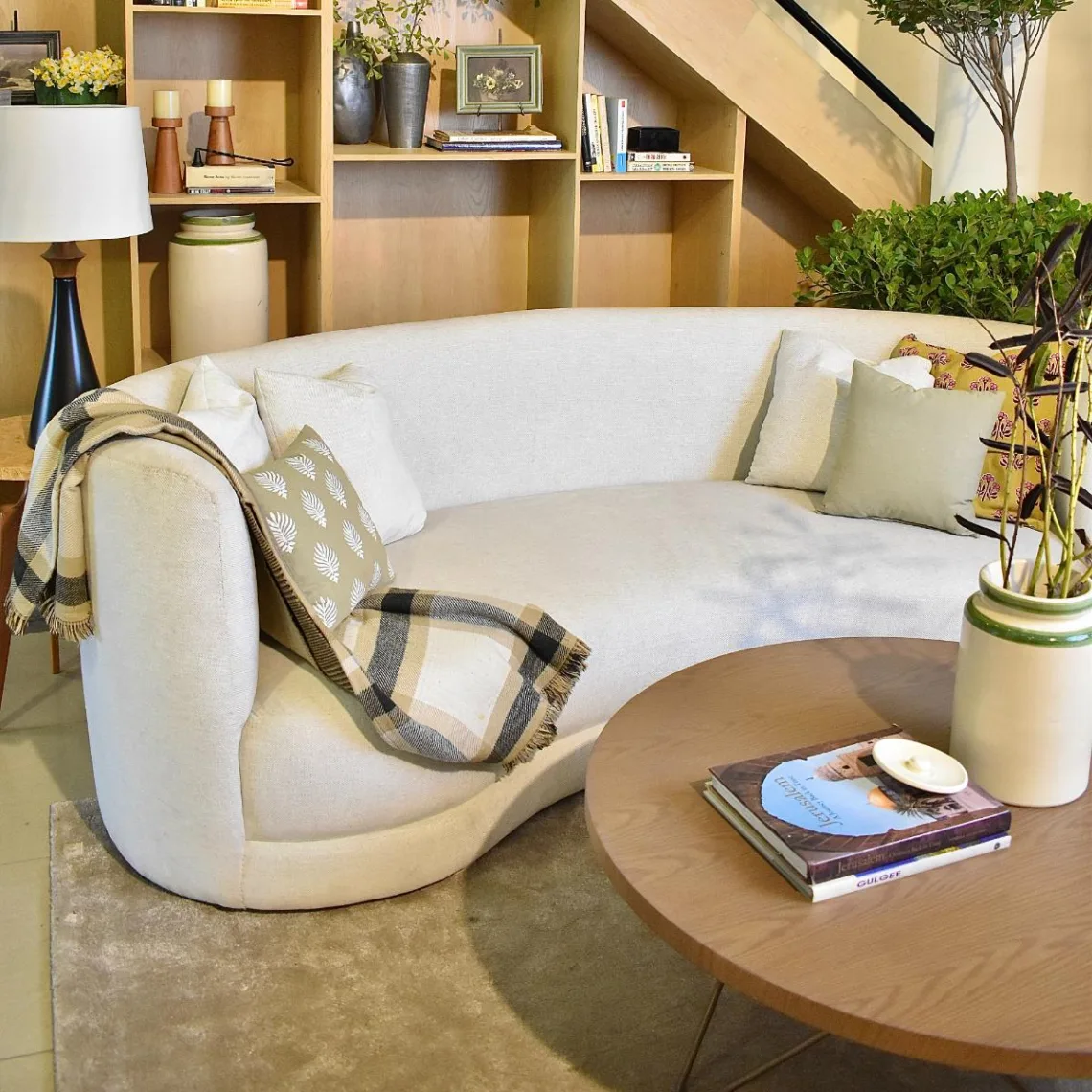 Interior Rumah Saat Ini: Sofa Lengkung dan Meja Dengan Tepian Lunak