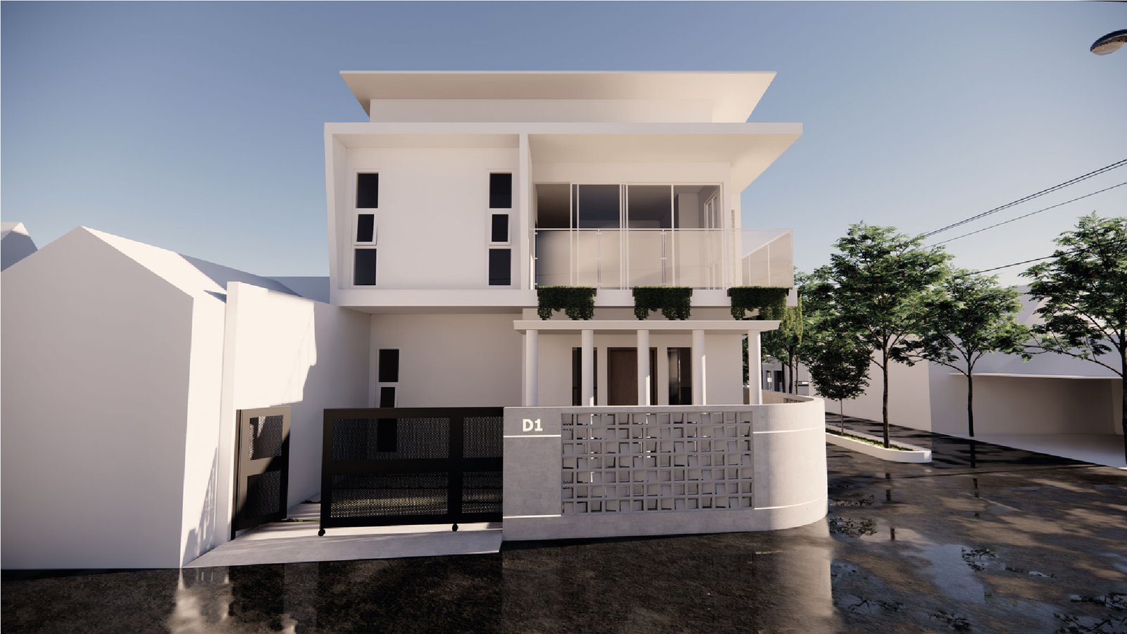 Kami menghadirkan desain rumah 2 lantai bergaya modern tropis kontemporer yang tampil bersih, dinamis, dan menyatu dengan iklim tropis. Rumah ini cocok untuk keluarga modern yang ingin hunian estetis, terang, dan nyaman di dalam lingkungan perumahan seperti Griya Safir.